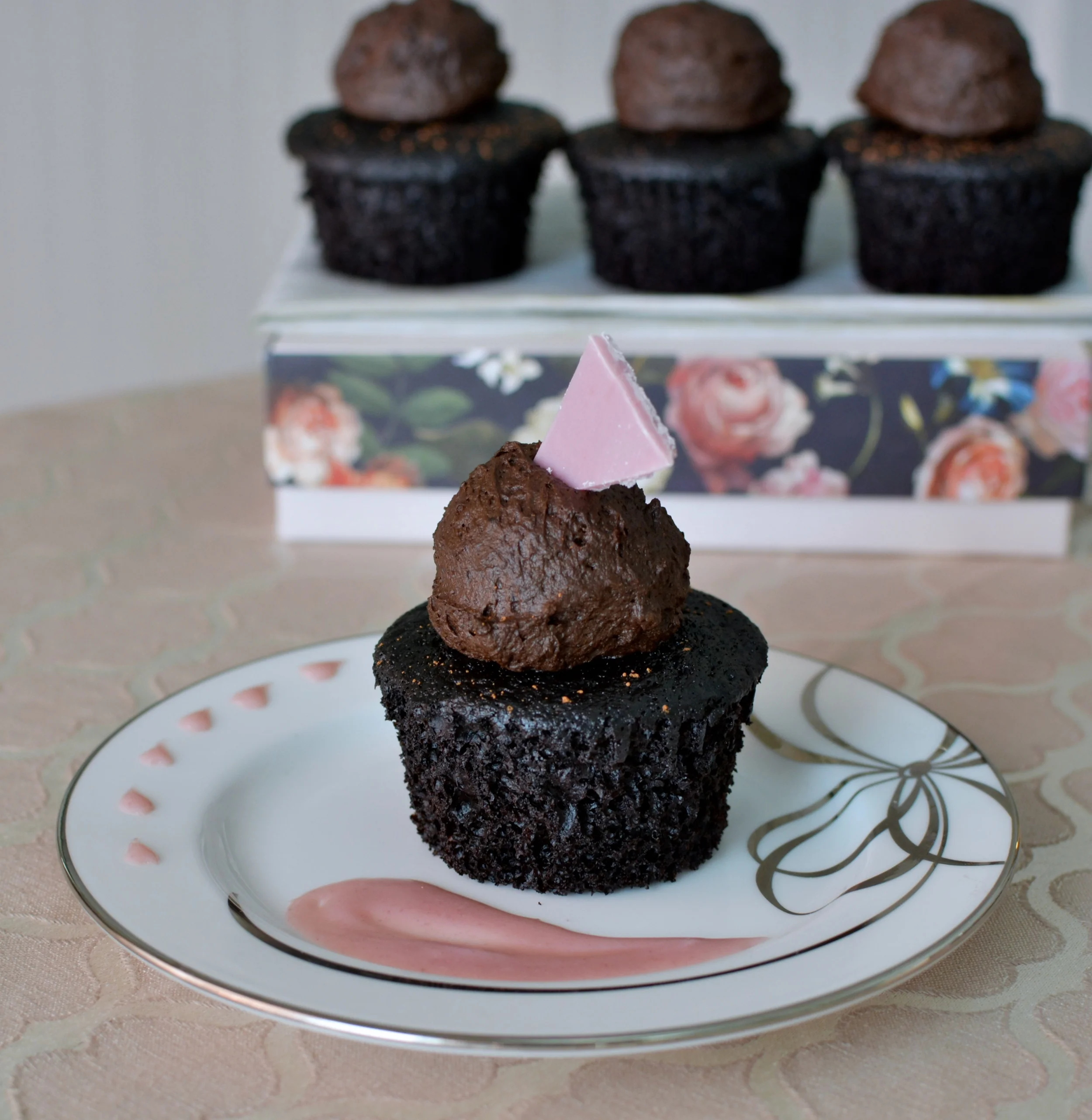 Dark chocolate, wine and a bit of spiciness. These are not your standard childhood chocolate cupcakes. They are sophisticated cupcakes destined to be on the dessert plates of a romantic, candlelight dinner.