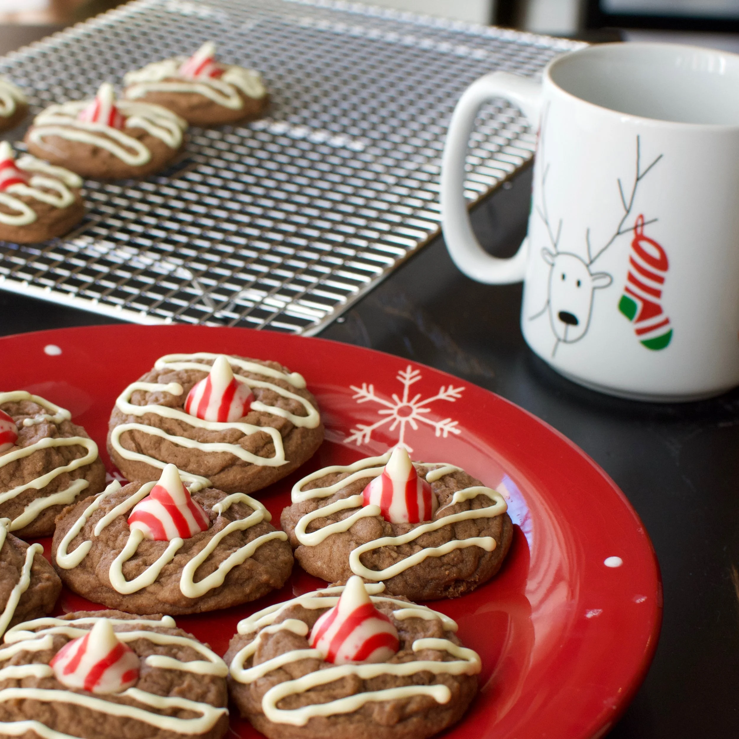 One thing i want to make clear, this isn't a rich chocolate cookie. If you think about your traditional powder mix hot cocoa, it has a subtle milky chocolate flavor. That is exactly what you will get with this cookie. I toyed around with adding some cocoa powder to up the chocolate, but I think it would take away from the hot chocolate flavor and leave you with just another chocolate cookie. I also added just a touch of peppermint extract since the Candy Cane Kiss adds a lot of minty favor. If you are going to leave out the Kiss or really enjoy peppermint flavor, up the 1/8 teaspoon to 1/4.