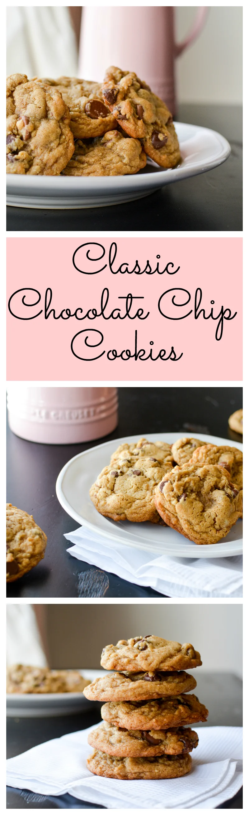 Classic chocolate chip cookies with slightly crispy edges, a soft chewy inside and a rich, toffee flavor